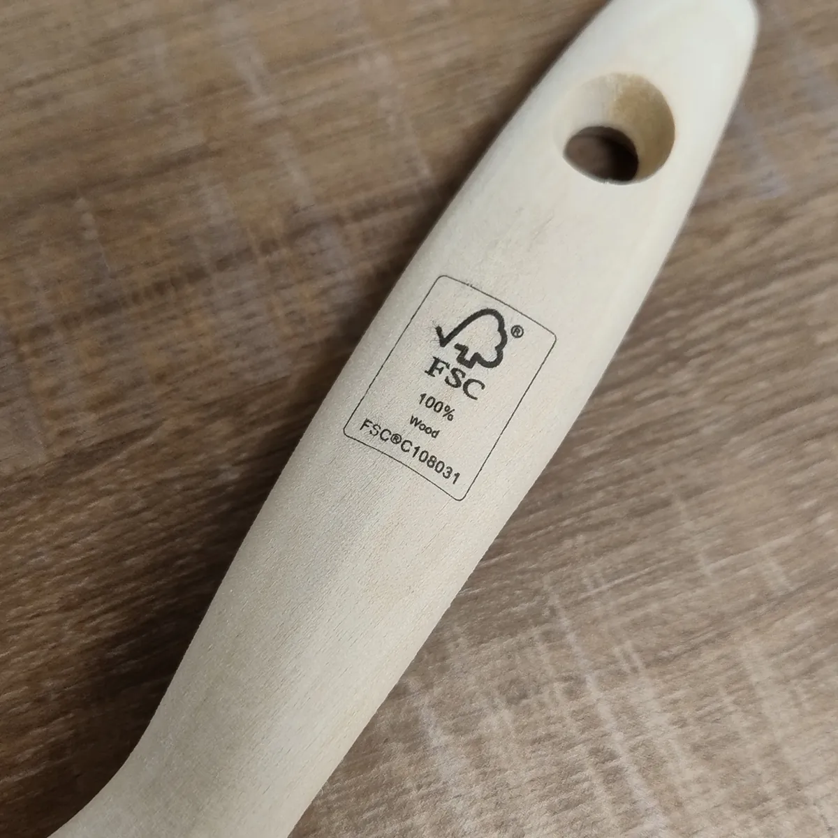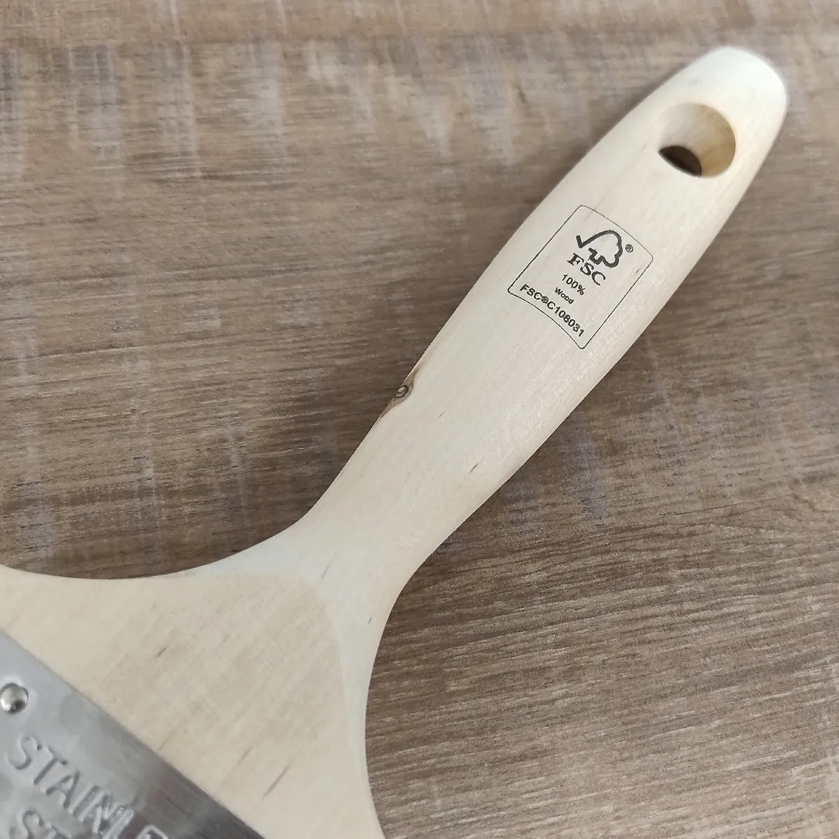 Filament sintetic, ferulă din inox și mâner din lemn de fag certificat FSC® (FSC-C108031).