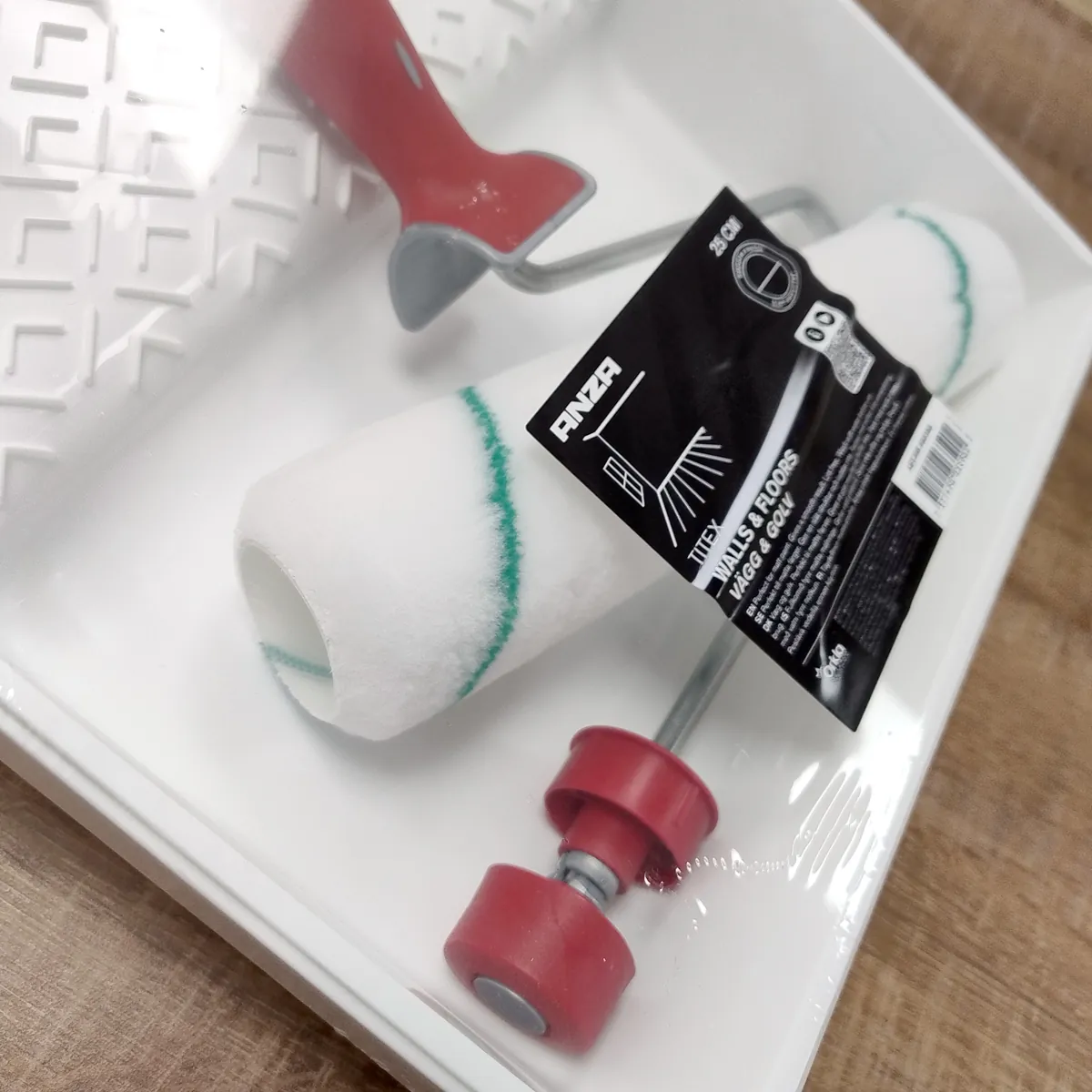 Set cu tavă, mâner și rolă Elite pentru suprafețe netede. Perfect pentru vopsirea pereților a tavanelor sau a podelei cu lac.